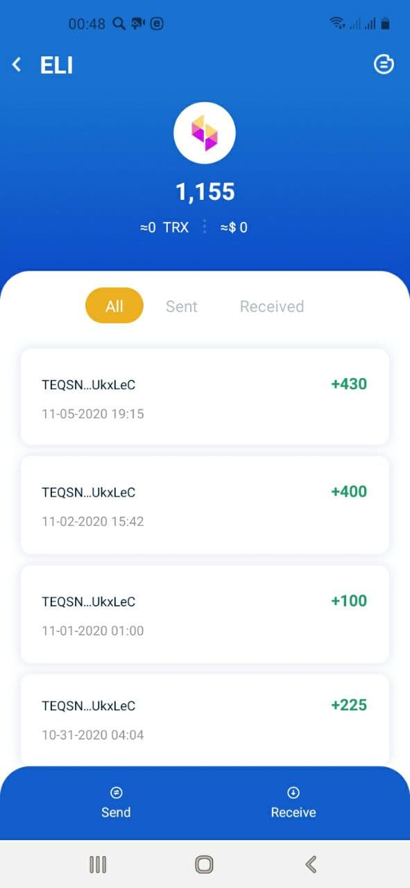 Вы должны добавить токен ELI в Ваш кошелек Tron.