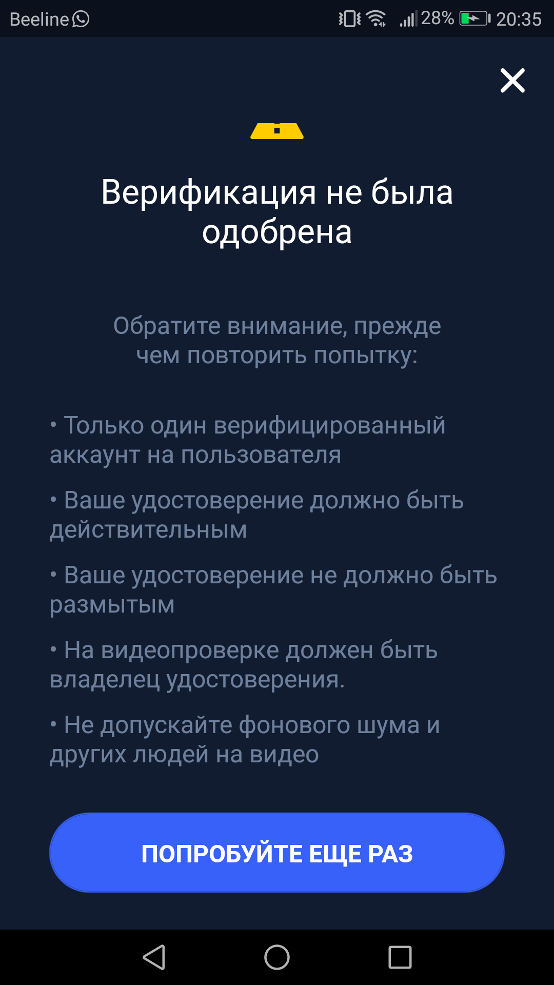 Как там вообще вериф пройти? Когда после того как вводишь имя фамилия, нажимаешь продолжить и высвечивается табличка вы не прошли верификацию, хотя я ни куда ни че еще даже не загружала!?