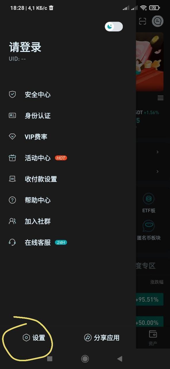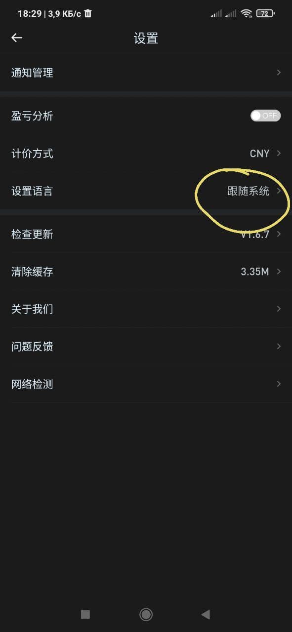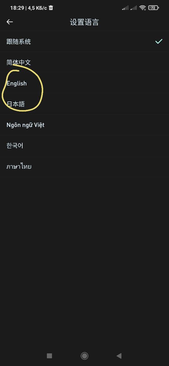 • Скачиваем приложение и заходим в него. Ниже приложу скриншот, где вы можете найти настройки и сменить язык на английский. После смены языка авторизуемся.