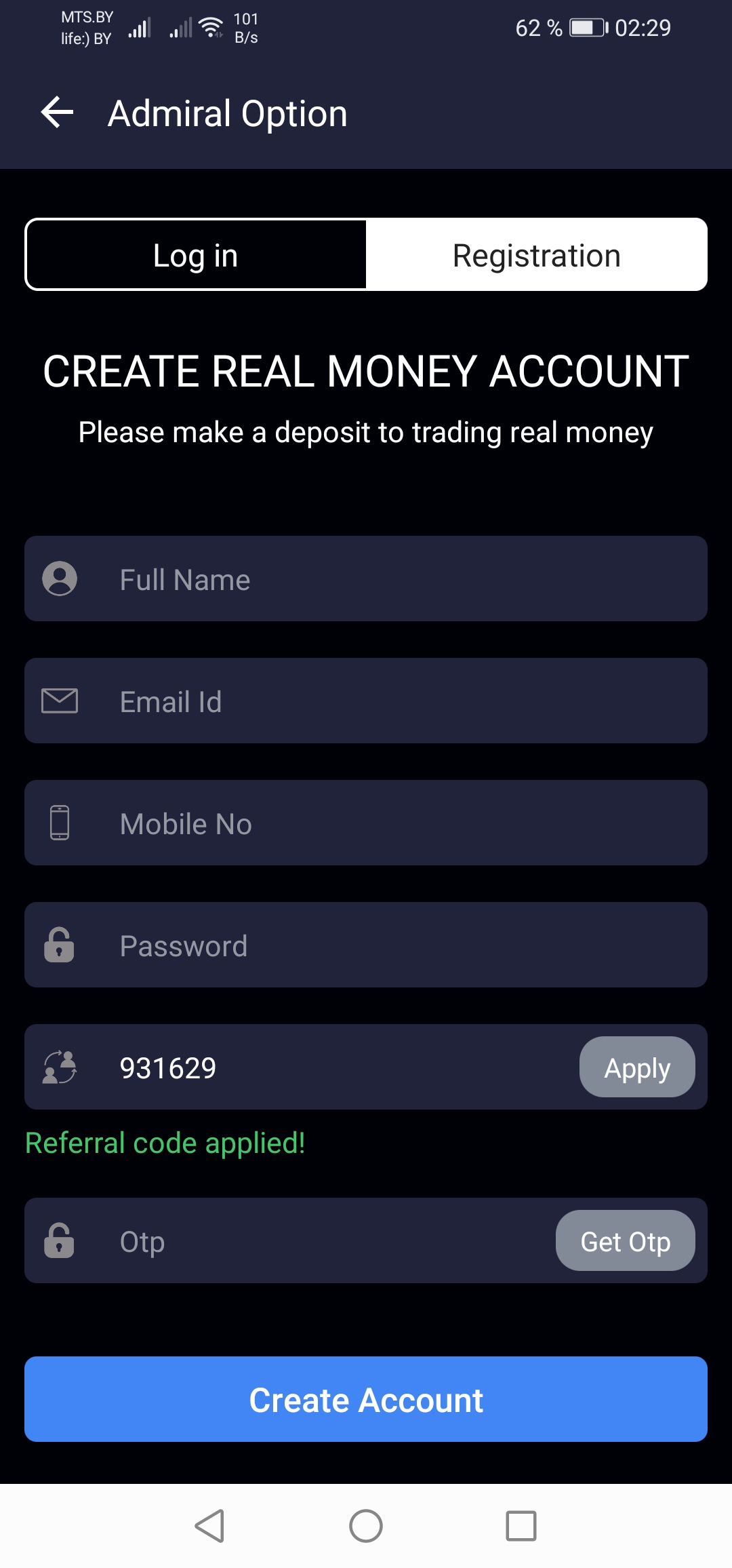 1. Скачиваем приложение - Admiral Option ссылка http://nullrefer.com/?https://play.google.com/store/apps/details?id=com.admiral&referrer=275427
