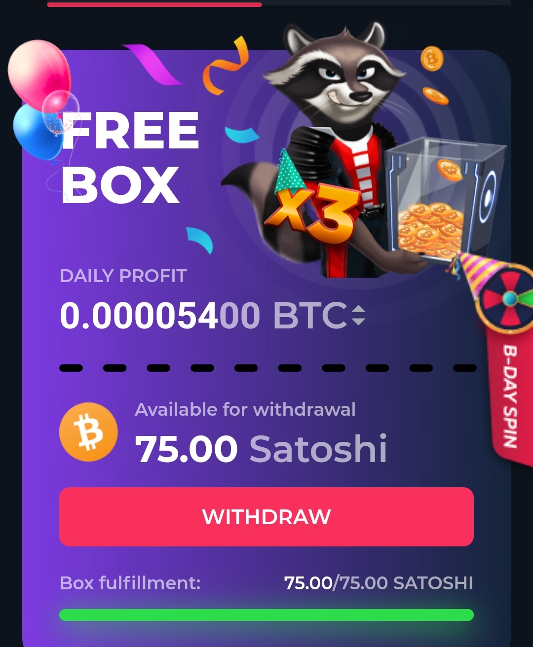За день можно набрать до 5400 сатоши!