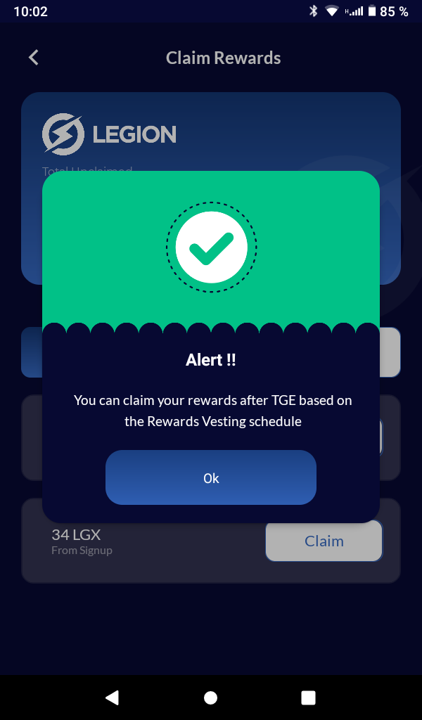 - Все, токены будут доступны 1 марта для вывода, но я бы за них забыл на годик. чтобы посмотреть монеты (5$ за регистрацию) переходите в профиль и нажимайте на Claim Rewards там будет указано ваше количество монет и $ https://register.legionnetwork.io/xQ99IhSdFt4b
