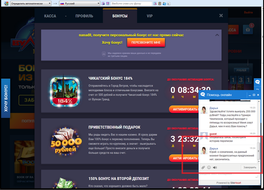 Так в том то и дело что у многих изначально недоверие к бренду "Вулкан".Хотя во многих из них(и их близнецов) народ отыгрывал бездепы,выводил их,а после этого уже и на свои там играл.Прав на все сто. Но я в эти вулканы даже не захожу, если бы Nema тут не проанонсировала, даже внимание не обратил бы.Мультика точно не было. Списался с представителем, с чатом. Даже перезвонила мне некая София. Интересовало готов ли депнуть. Сказал ,в скриптовые казино практически не заливаю. Тестирую бездепы, если фартит и главное выводят четко, тогда вероятность есть. что закину деп, а так без вариантов. Как-то интерес ко мне угас. Вежливо раскланялись)