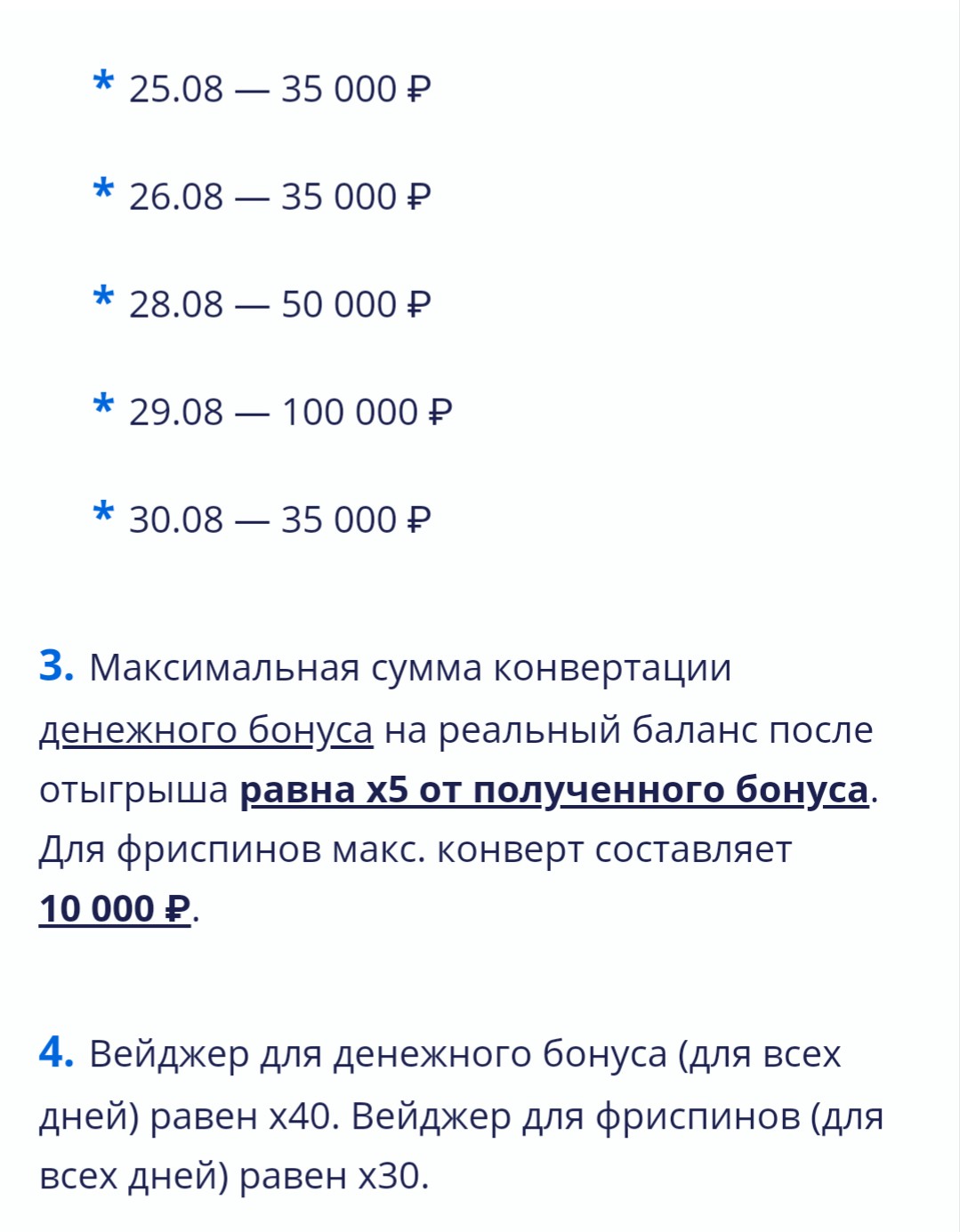 В вулкане не всегда вейджер х40, бывает повторюсь х30 и так же не всегда макскэшаут х5 чаще ограничивается суммой в размере 30-50к₽ что очень неплохо, для меня одни из самых оптимальные бонусные условия и в целом их система поощрение игроков акции, промо и лояльность на высшем уровне,что не мало важно все понятно,прозрачно и без подводных условий!