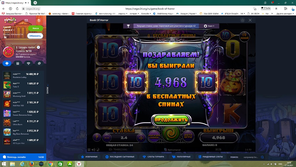 💌WR95B💌 - 95% + 25 FS в Book of Horror за депозит от 500 ₽