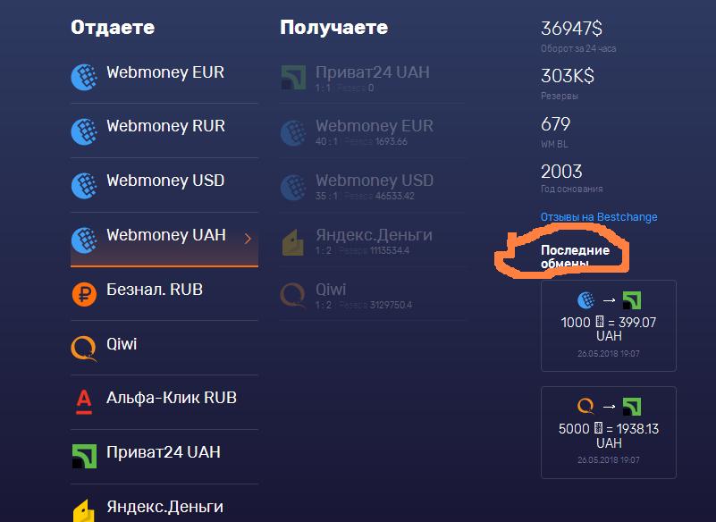 Хотя возможно то так отображает для неклиентов, потому что в истории последних операций есть свежие обмены на Приват с Вебмани.