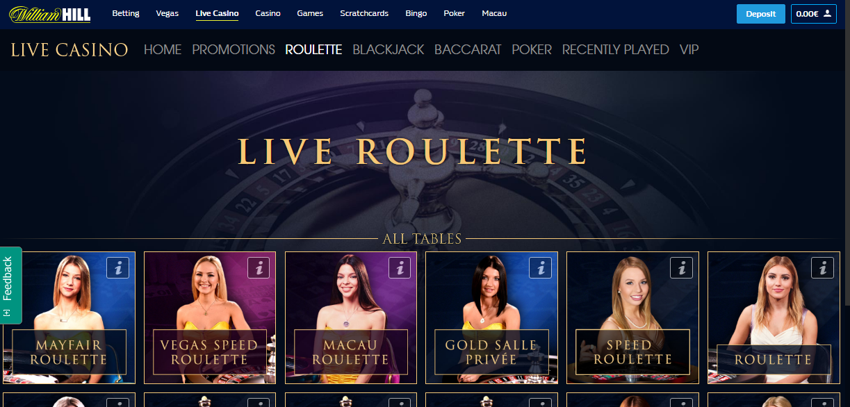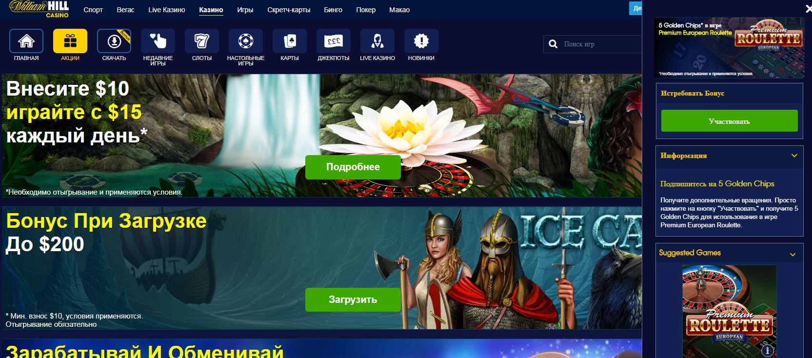 Бонус на депозит William Hill Живое казино бонусы до 300$