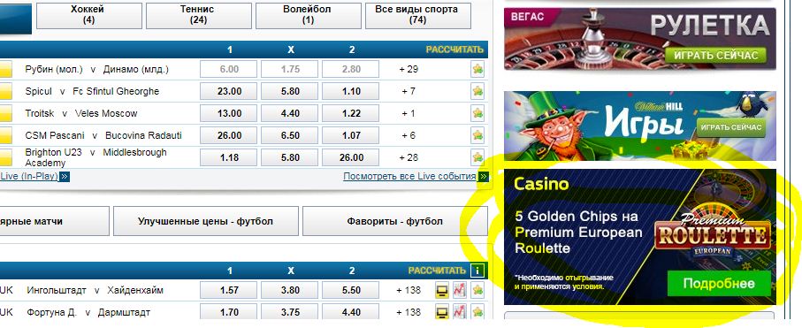 Более подробные правила и условия на сайте William Hill.