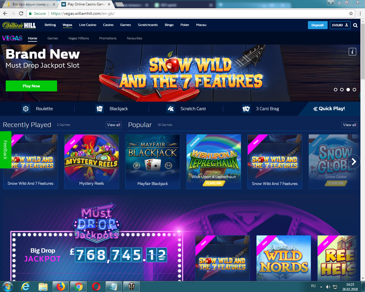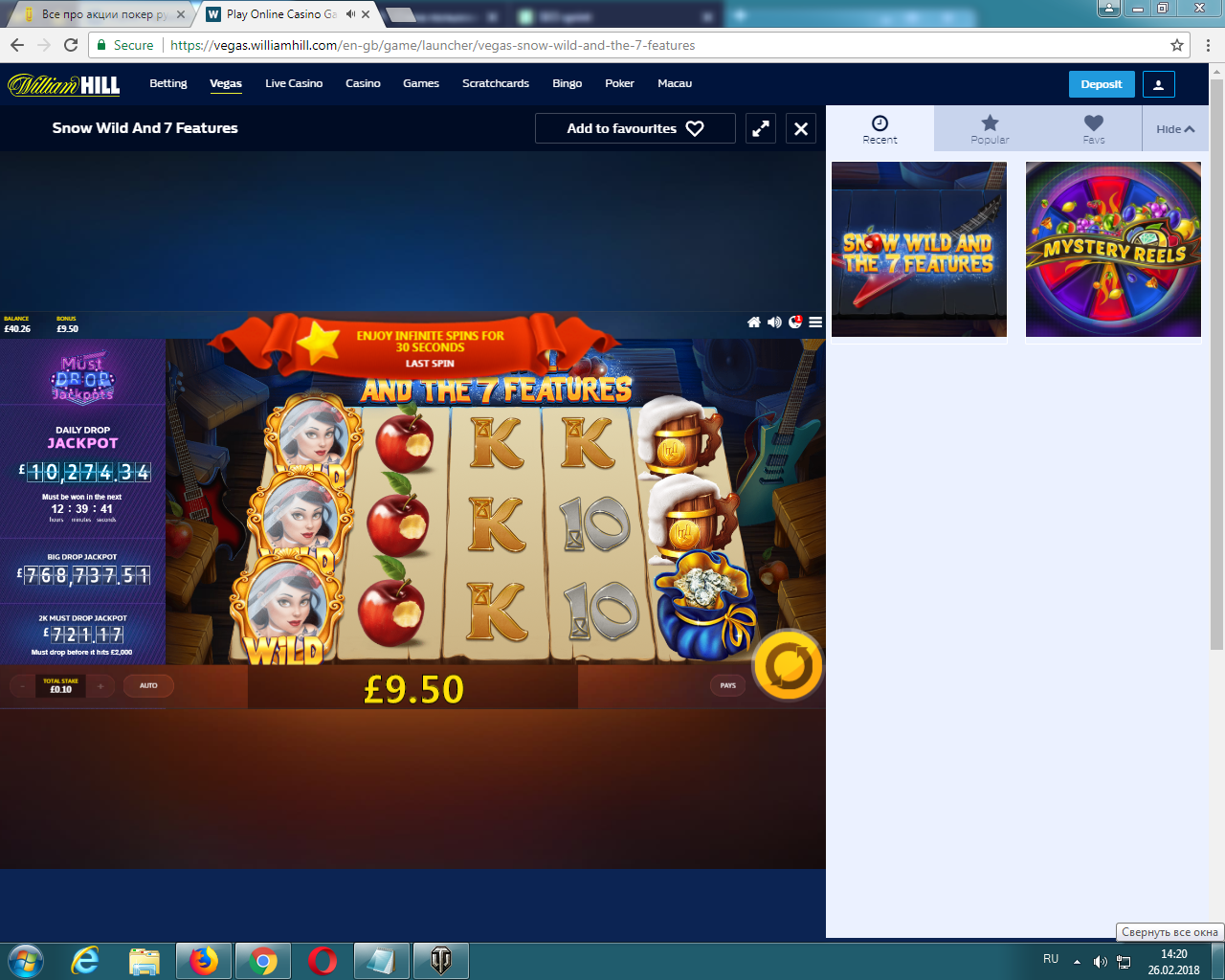 Нормально за 30 сек насыпало )Заходите сюда в промо там в слот дают на 30 секунд покрутить - старайтесь быстро по максимуму уложится в полминуты все что выбьете надо будет откручиватьс вагером https://vegas.williamhill.com/en-gb/promotions