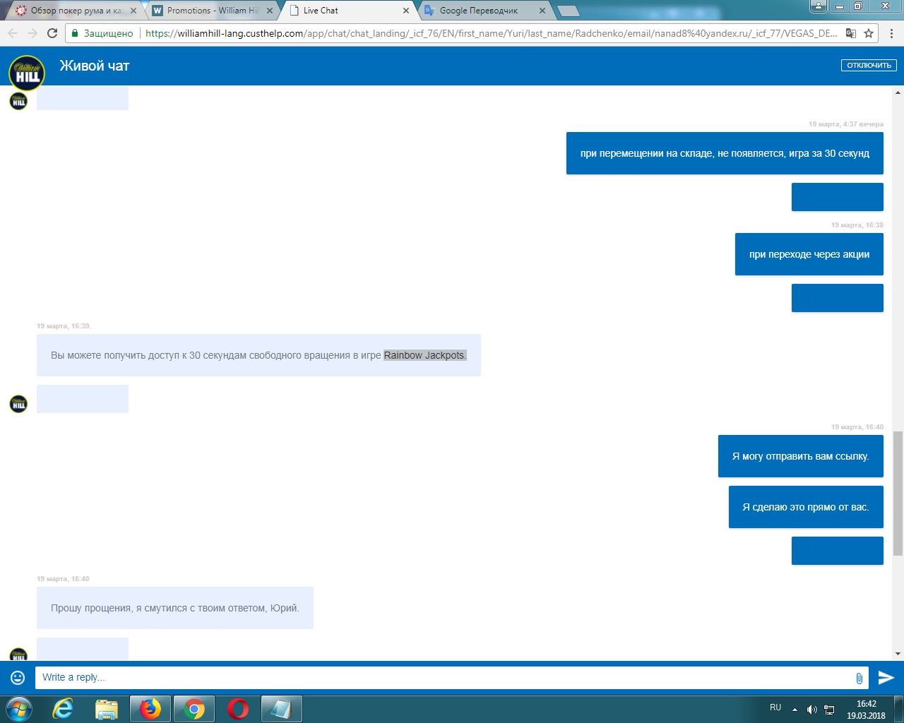 Бонус на депозит William Hill Живое казино бонусы до 300$