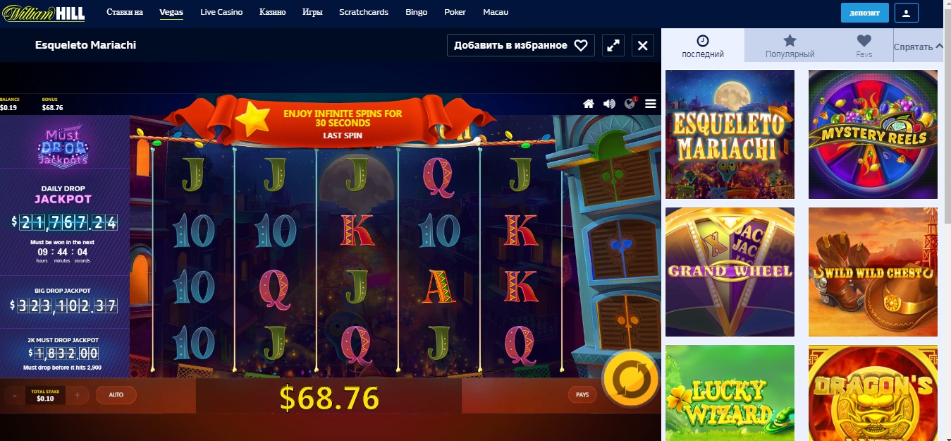 Бонус на депозит William Hill Живое казино бонусы до 300$