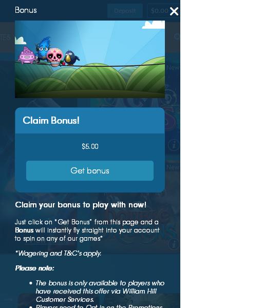 Бонус на депозит William Hill Живое казино бонусы до 300$