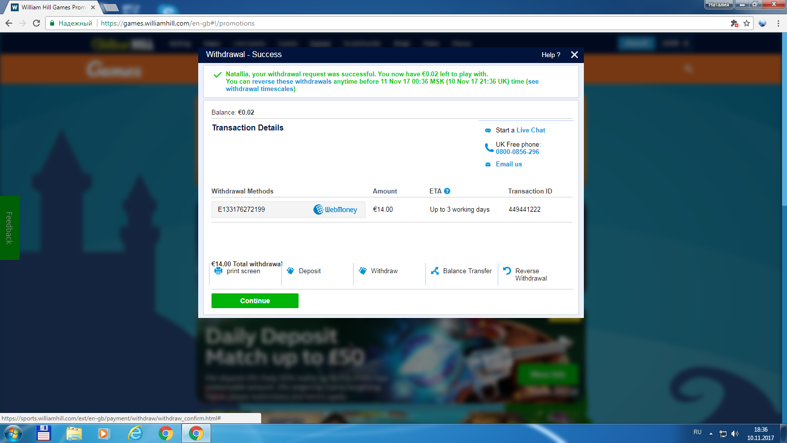 Сейчас проверю, как быстро выведут!))) Отыграла 14 евро, не стала уже рисковать, до 20 догонять))) По мне, так лучше синица в руках...чем утка под кроватью)))))))