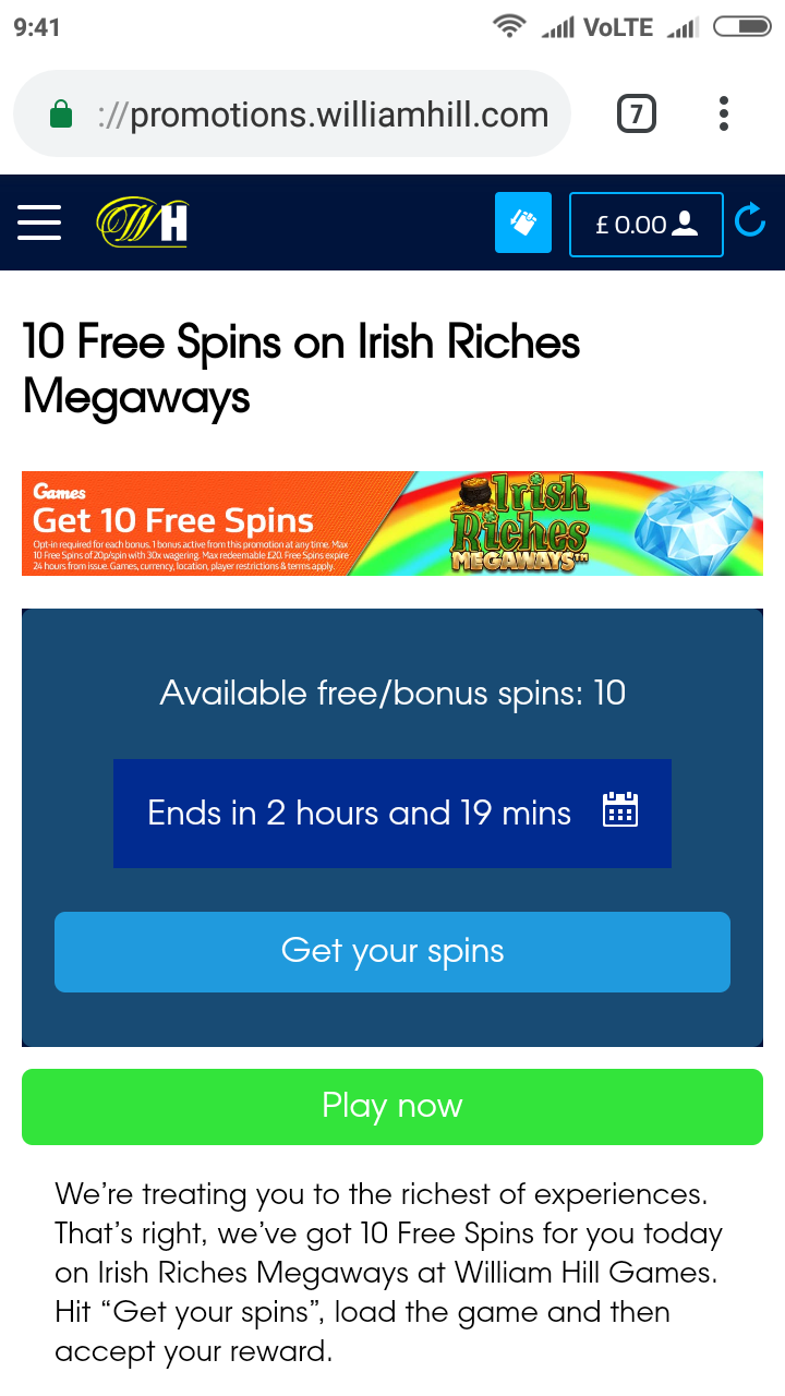 Бонус на депозит William Hill Живое казино бонусы до 300$