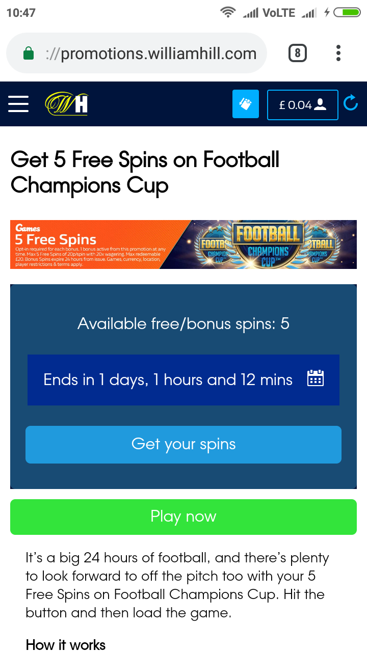 Бонус на депозит William Hill Живое казино бонусы до 300$