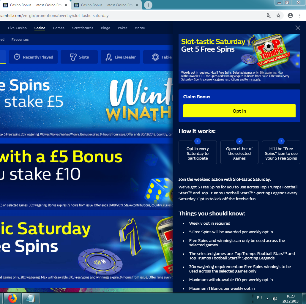 Бонус на депозит William Hill Живое казино бонусы до 300$