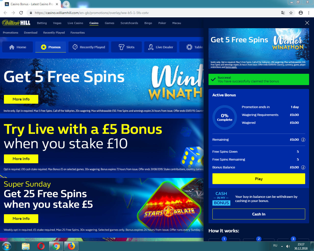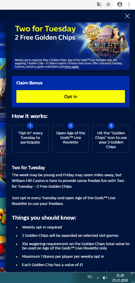 Ежедневная акция от William Hill c 12:00 (UK time) 26.12.2018 до 12:00 7.01.2019.