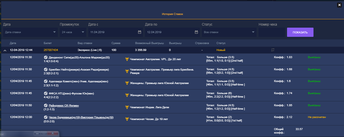 в оконцовке 350 рублей на счёт упало. Слился до 100 и ушел на ставки