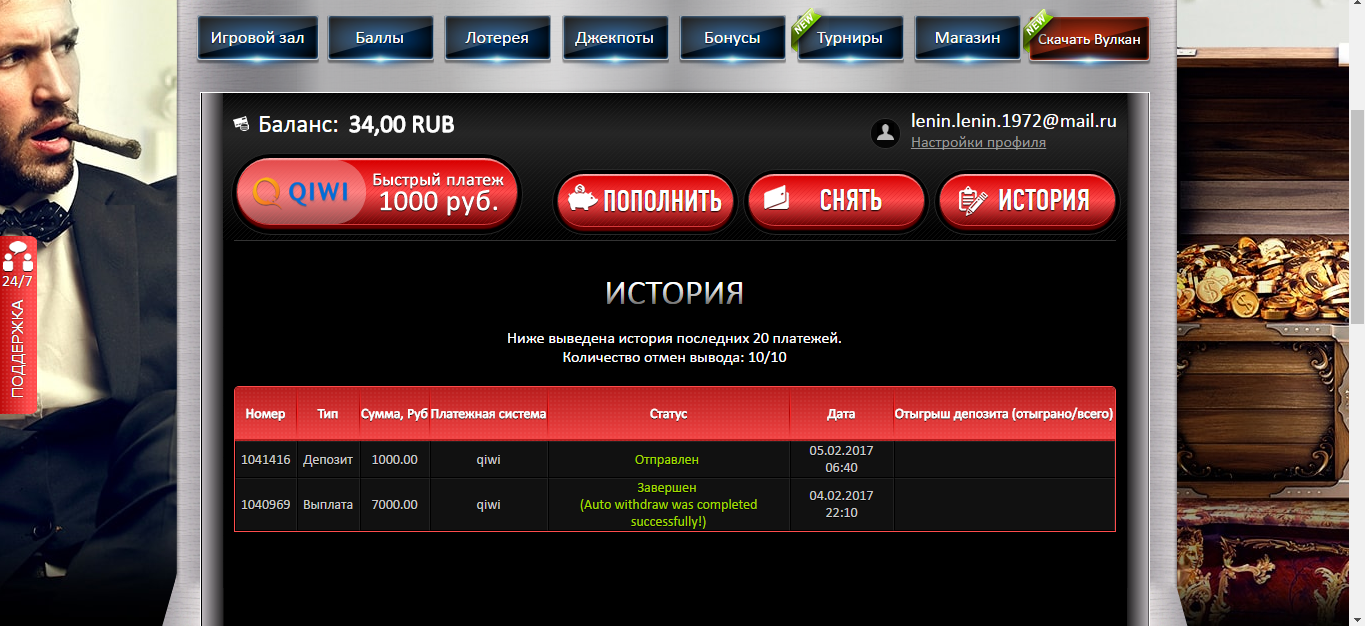 Захожу на сайт казино в историю и вижу чудо. Не поверил- проверил киви кошелёк и убедился