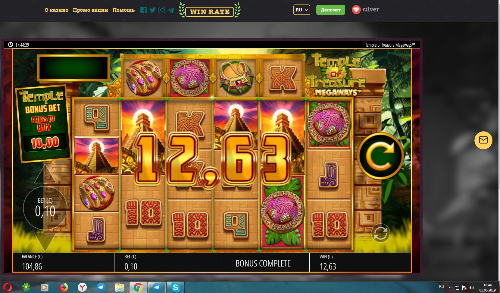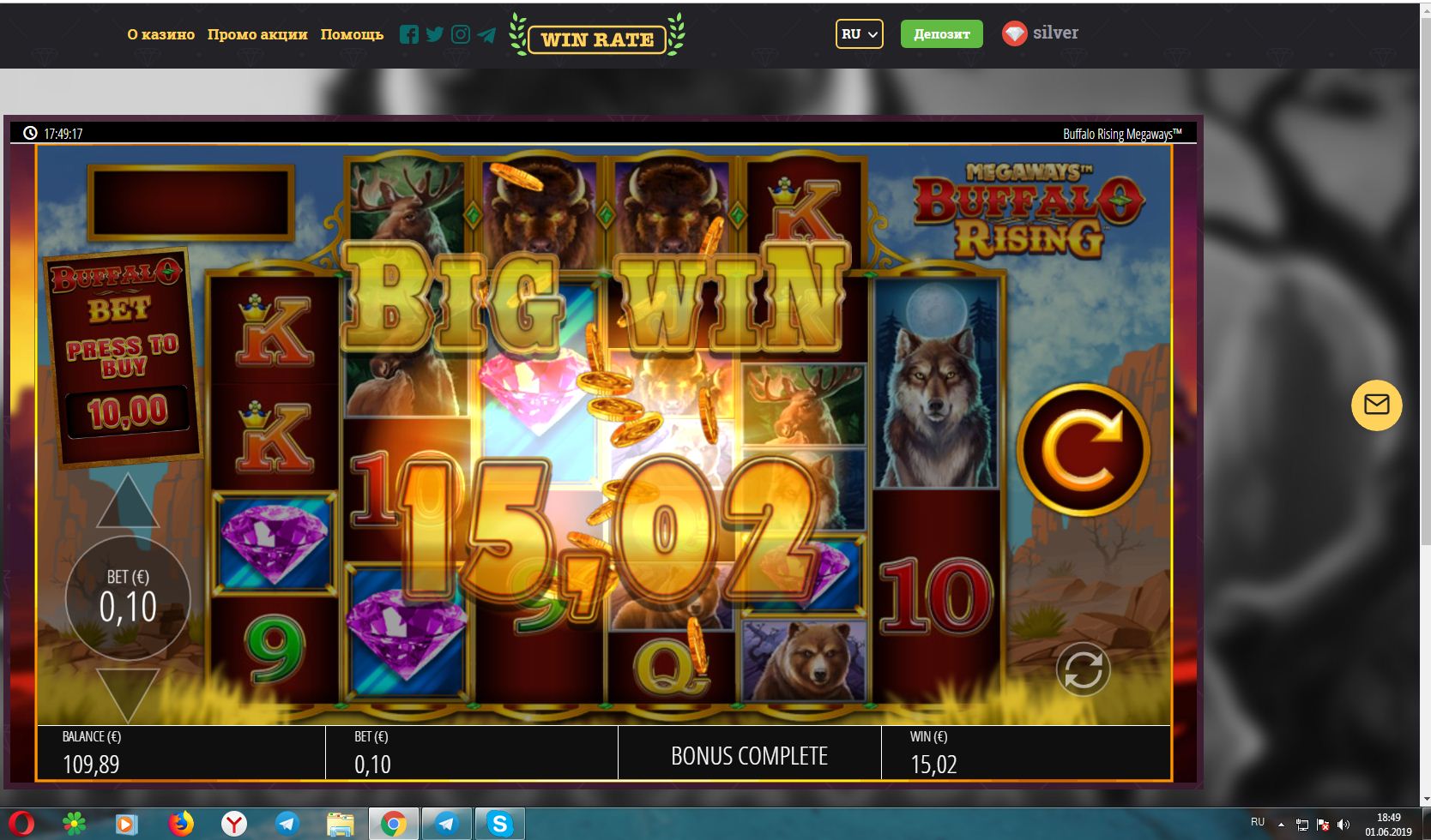Казино WinRate, поиграл немного с кешбека (проиграл 2 депа по 10 фишек и с 5 раскрутился)...