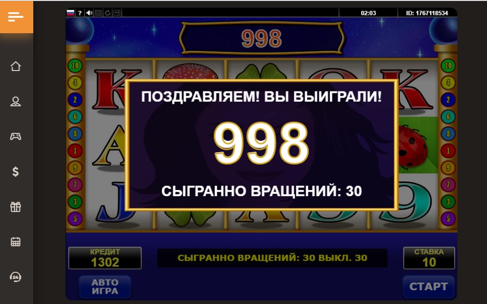 Т.е. делаю депозит от 300 до 1000 р максимум - в слотах катаю по 3-4-5-10 р за спин - если уж попрет, то поднимаю ставку