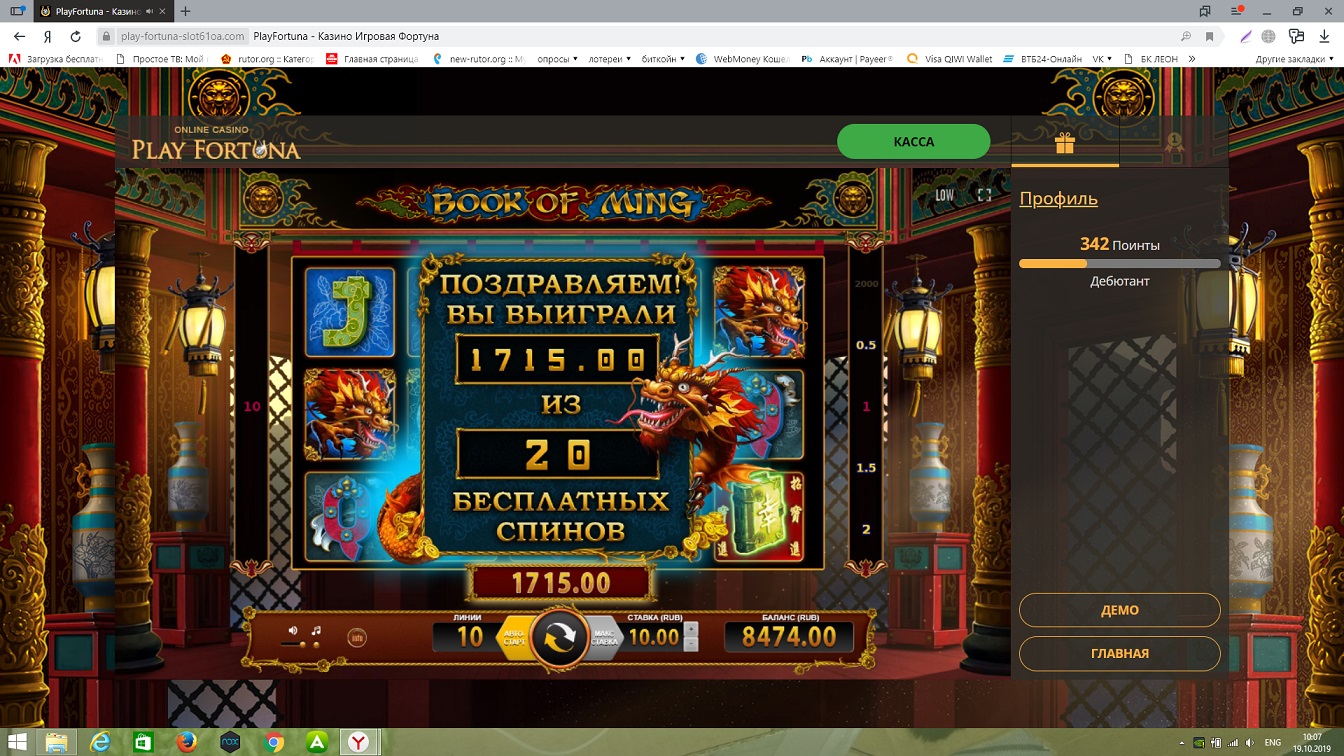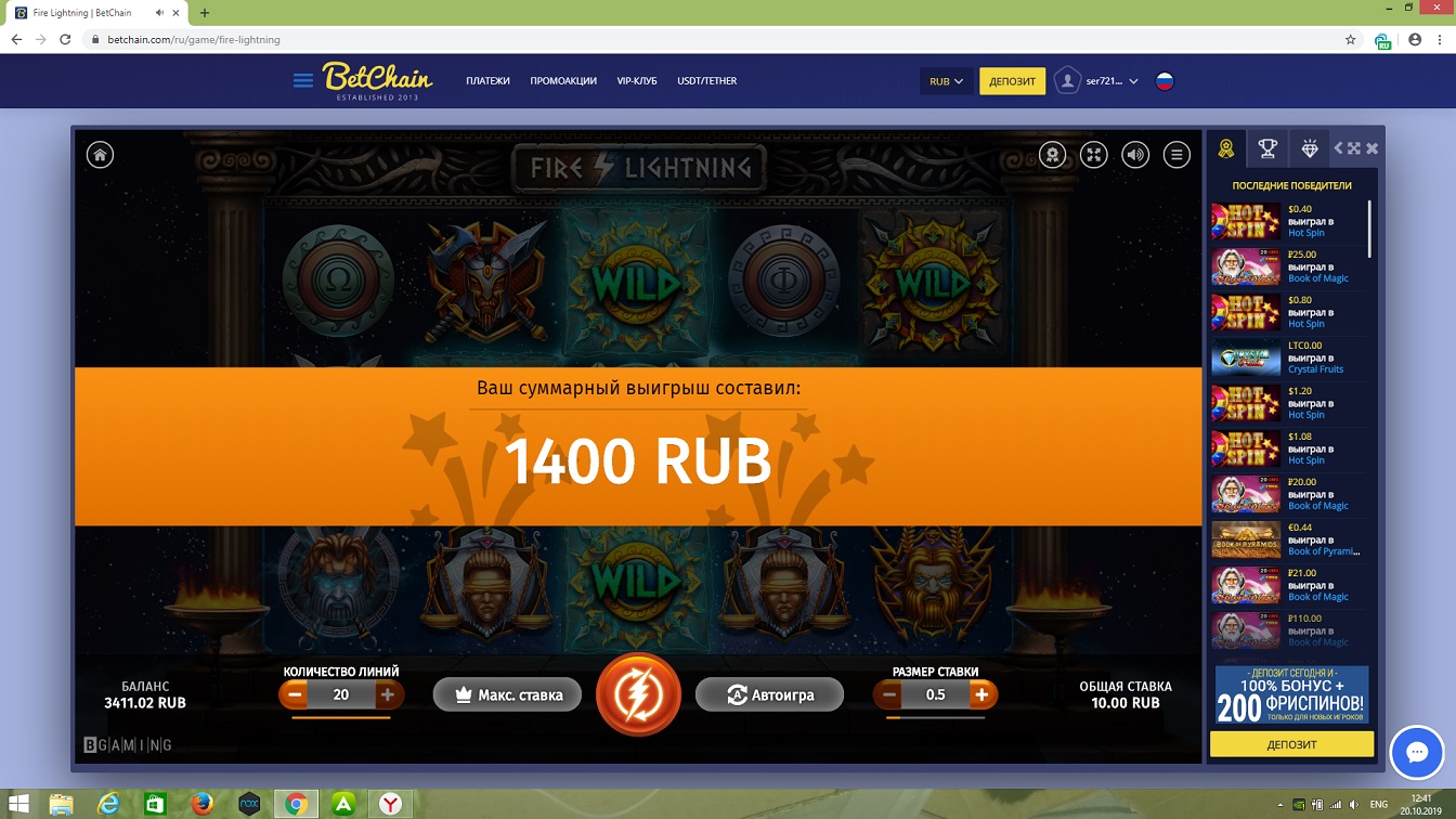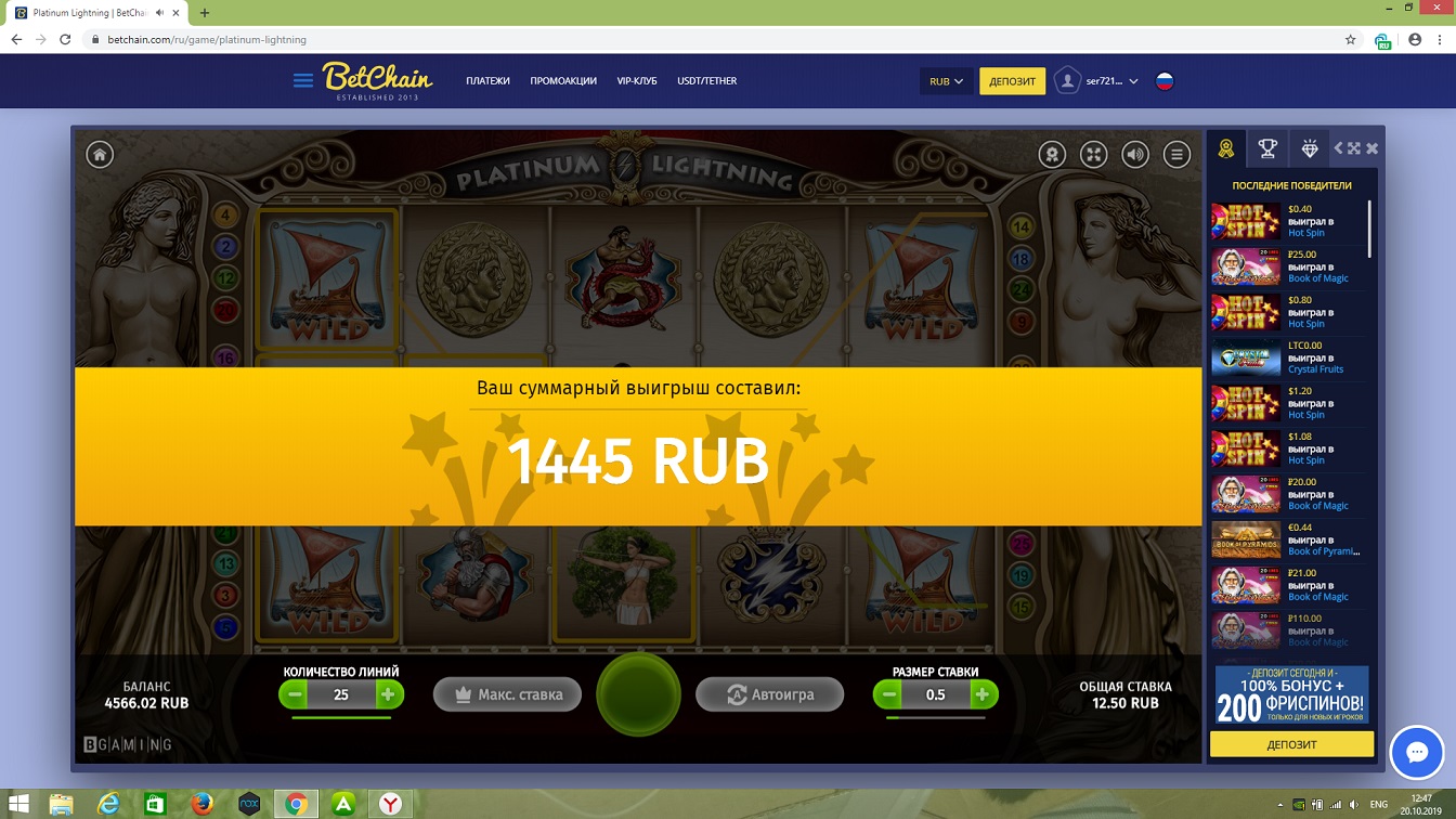 Насмотрелся я на занос выше от VelesG и решил тоже попробовать (хоть и не очень люблю этот слот). Правда по 1 линии не хотело давать, но вот по 3 очень быстро и интересно зашло)))