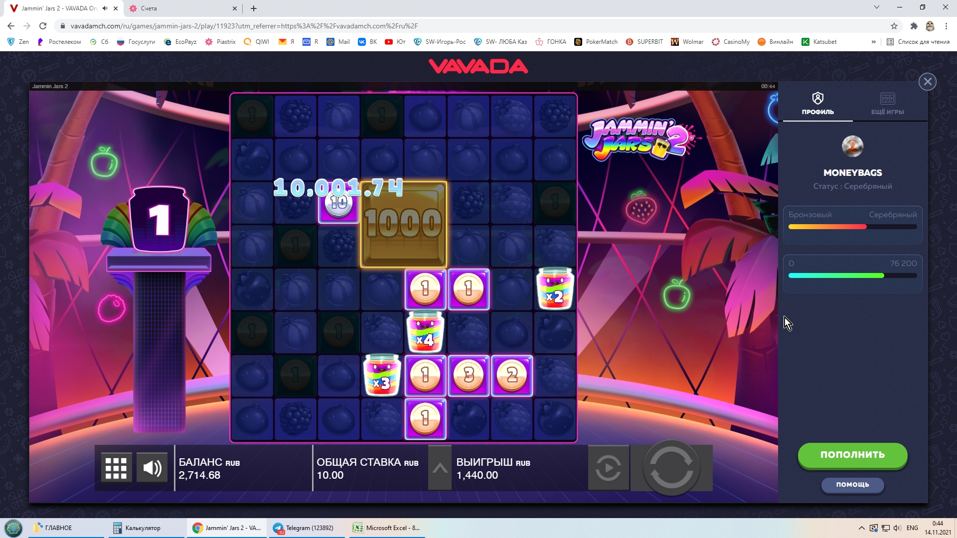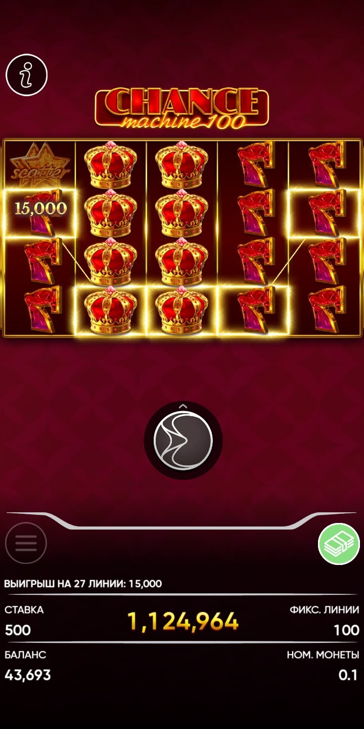 Но вот этот случай побил все мои рекорды за один ход если считать произтщол он около года назад chance machine. Вечер катал я значит по 500 ставке коэффициент 10 копеечку 50 рублей ход катаю тут че то моя подходит спрашивает че говорит в магазине купить ну я ей че то там отвечаю а сам в это время жму на экран телефона играю и бац краем глаза замечаю как у меня на по середине нолей в выйграше что то много вот сами и смотрите я незнаю сколько это хххххх но было приятно
