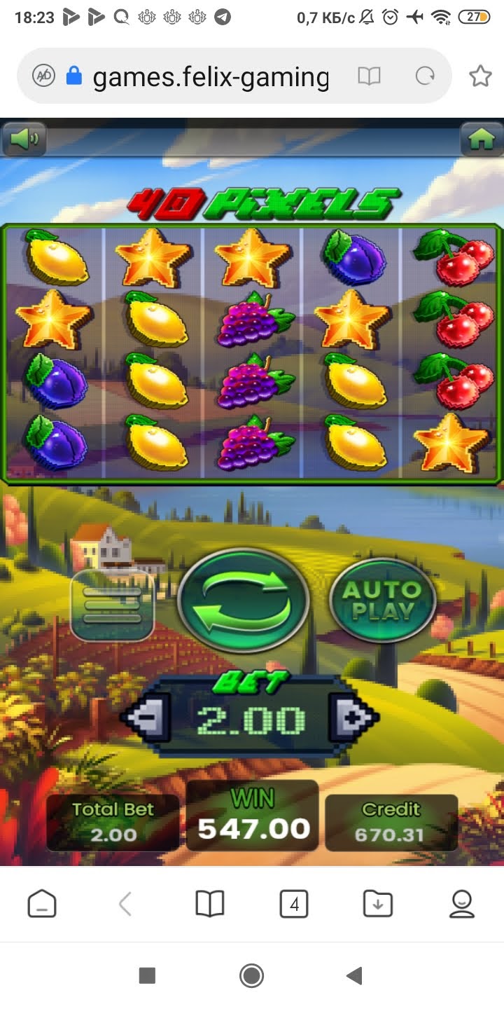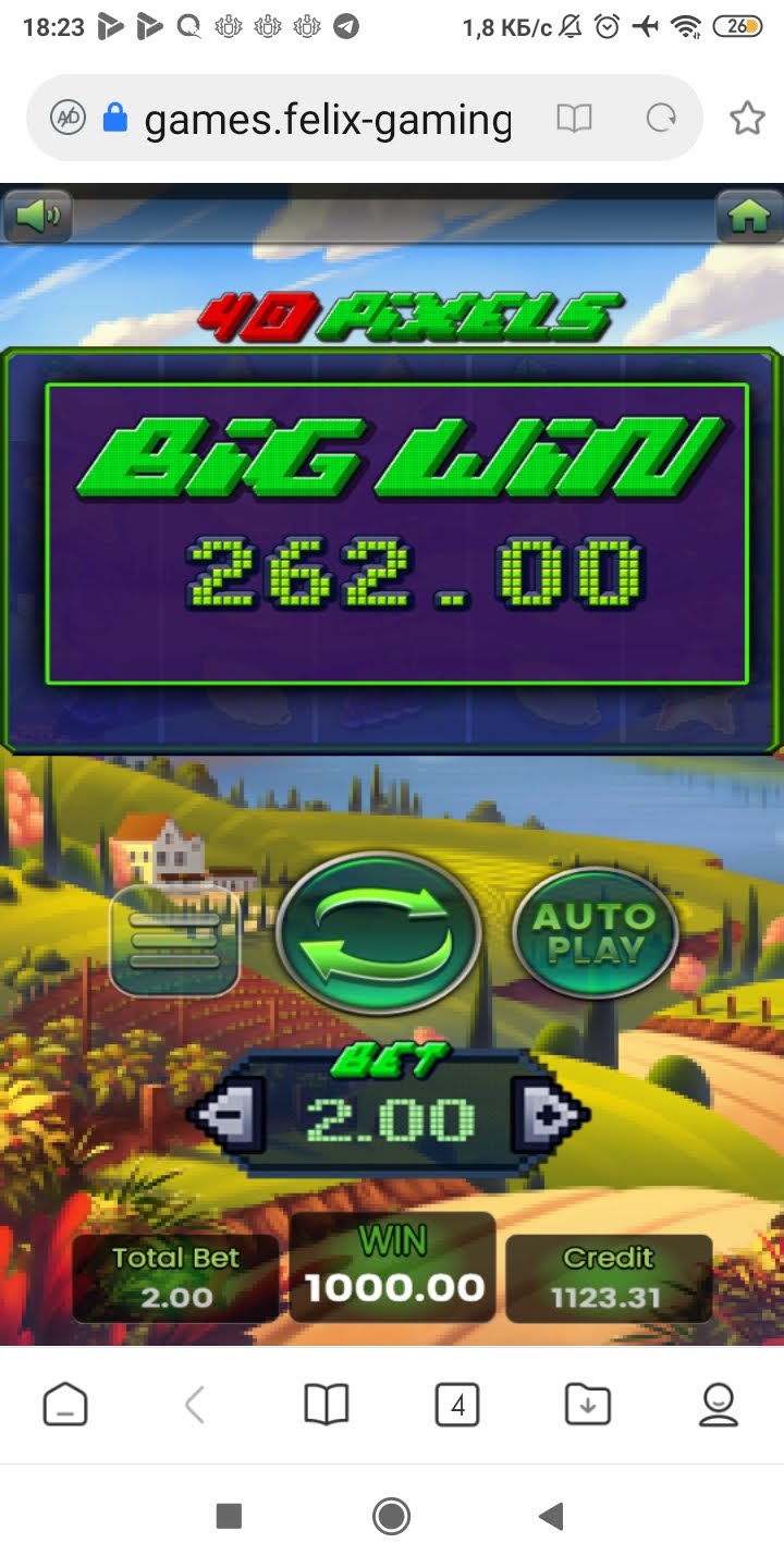 Ничего обычный зимний вечер дома решил пойти в ванную поваляться так сказать кайфануть в горячей водичке ну и поиграть свои 1500 рублей зашел на сайт 1хslots и включил игру не на рубли играл а на евро по нпчалу играл по 0.20 € за ход потом потихоньку поднялся до 120 евро и поменял ставку по 2 евро и что катаю катаю и тут раз все замоогадо музыка не музыка я вчем дело а он мне показывает пять звёзд в разных положениях и 1000 евро выигрыш вот так то я остался доволен игрой в тот вечер пошёл по магазинам со своей малышкой игра называлась 40 пиксельс