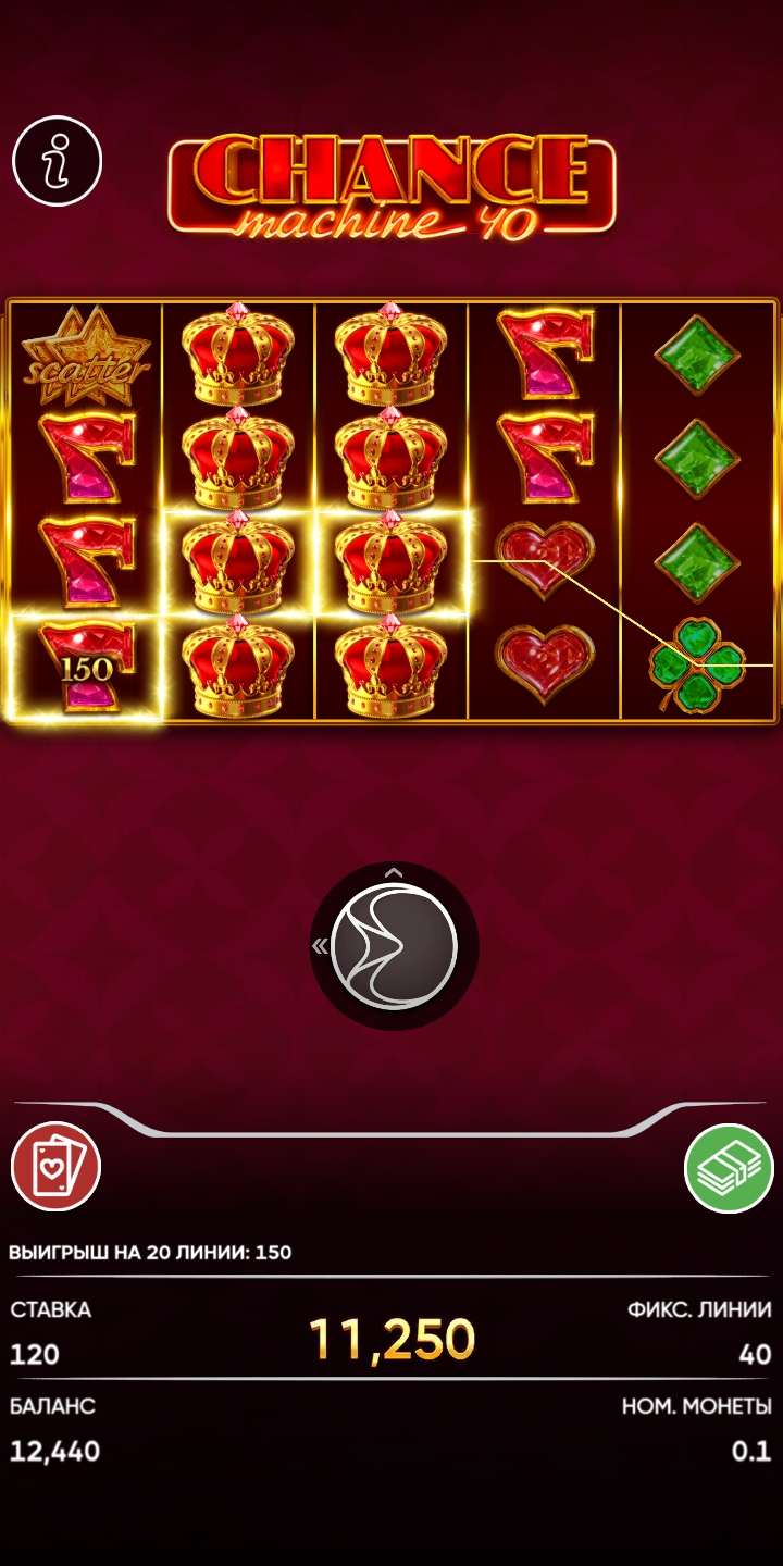 Это был пятый деп 1500руб под бонус вторника 50%, первые четыре были меньше депы. Сначала по 40 руб х114 дало.