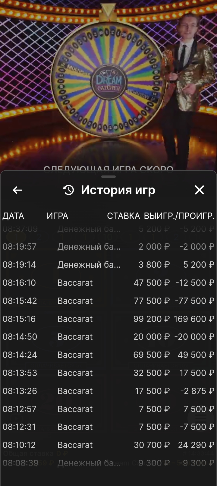 Х хз сколько короче это был трешь депозит 1800р с горем пополам поднялся до 40 с чем то тысяч туда сюда жрет думаю а впи/// захожу оллинить в баккару начинаю делать ставки в этот момент меня зовет бурильщик я резко убираю телефон в карман и не до конца нажал на кнопку которая блокирует экран и значит за меня начинает играть мой карман ну результат вот такой когда я достал телефон с кармана у меня на балике правда было не 268к а всего 170к я С началом думал лаг какой то потом зашел в историю и оху// ну как правило меня жаба задушила что у меня было 268к ну короче весь баланс сожрал ноулимит и дрим катчер