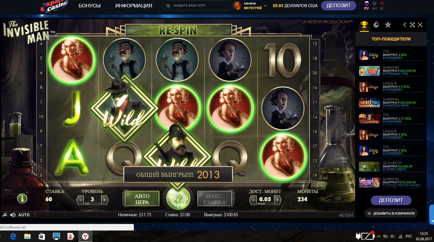 Выводи- хорошего по-немножку))) Не все же тебе выводить суммы с 0000)))Space casino депозит 25$ играю как всегда . ставка 3$ поймал линию мадам блонд .))) +100$ поднимаю ставку до 7$ поймал бонус подумал вот и занос .нот увы всего +87$ . теперь не знаю. 150 $ вывести или продолжить ?))Посмотреть вложение 21604 Посмотреть вложение 21605