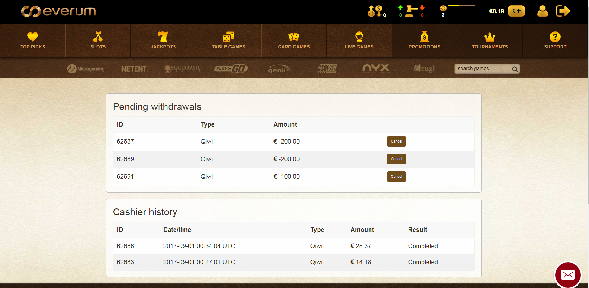 Я зареган почты с самого открытия Everum, верификация пройдена, с выводом средств проблем не было, мелкие суммы выводят оперативно. Множества игроков хвалят предприятию на отдачу, у меня по ходу невезучи аккаунт :). По больше заносов, поздравляю:good:.