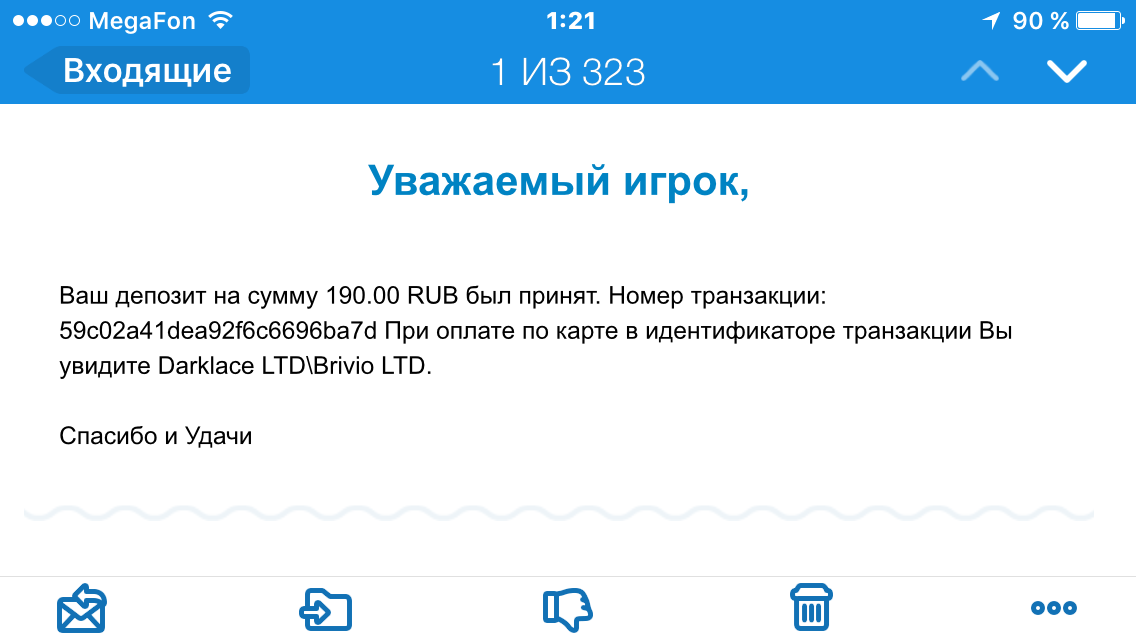 Слов нет)))) ФАРТ в чистом виде)))ночь. настроение испортили .мне .думаю надо разредится . на улице дождь до терминала не пошёл .. н на киви 190 руб . ай решил их депнуть в казино х. долго думал в каком слоте их крутануть . выбор пал на слот в который играл до этого один раз .выбор оказался удачным .сменил слот и =12К руб и настроение сразу появилась. за пивком сразу сходил не смотря на дождь .и киви пополнел ))).Посмотреть вложение 26587 Посмотреть вложение 26588 Посмотреть вложение 26589 Посмотреть вложение 26591