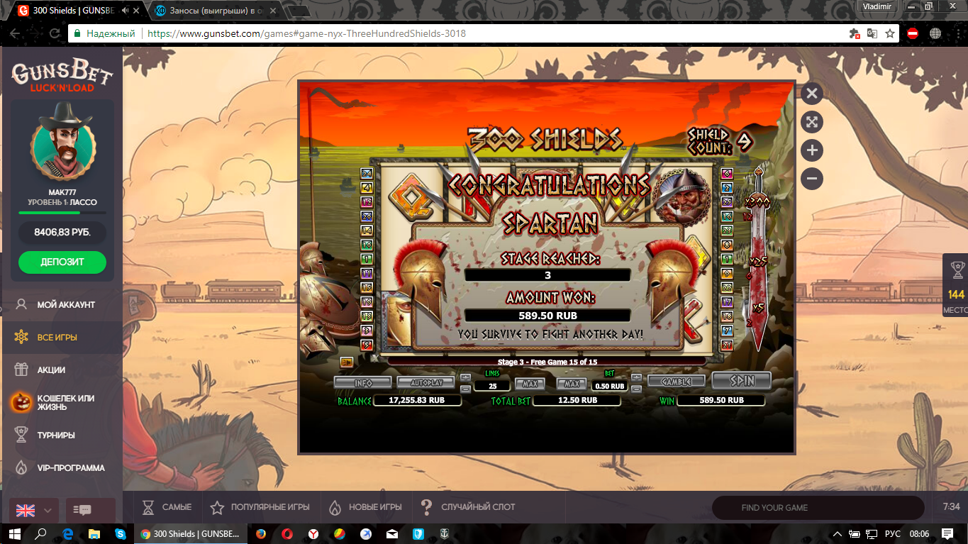 вчера случайно занял призовое место в каком то турнире Gunsbet casino, сегодня прилетело 5 евро, как всегда эксперименты - вообще непонятная игра, на ФС перед этим дало ноль, а тут просто со спина