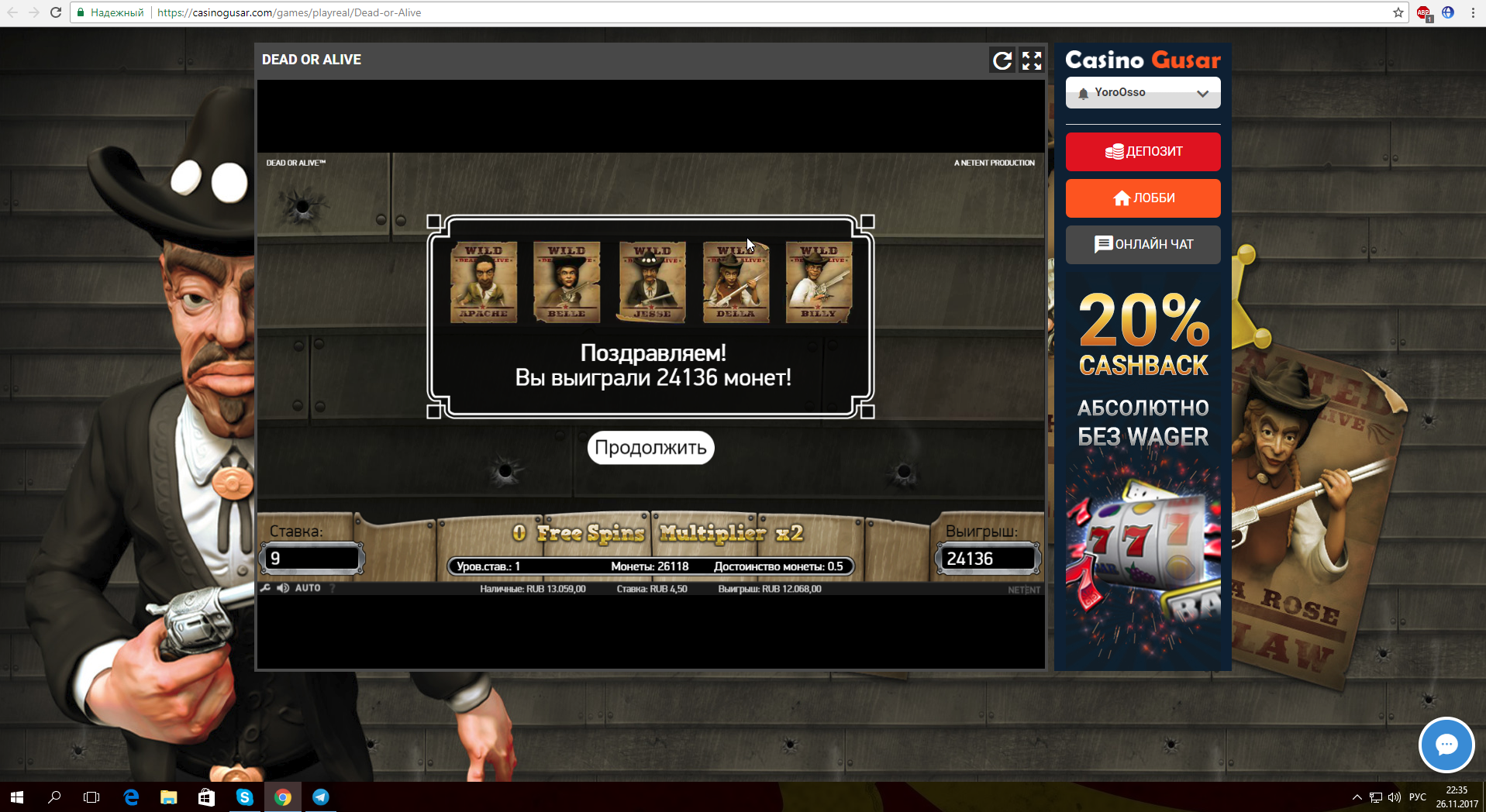 Давненько не загружал классику от NetEnt. Немного поднял ставку и отловил бонуску, которые в Dead or Alive не жадные.