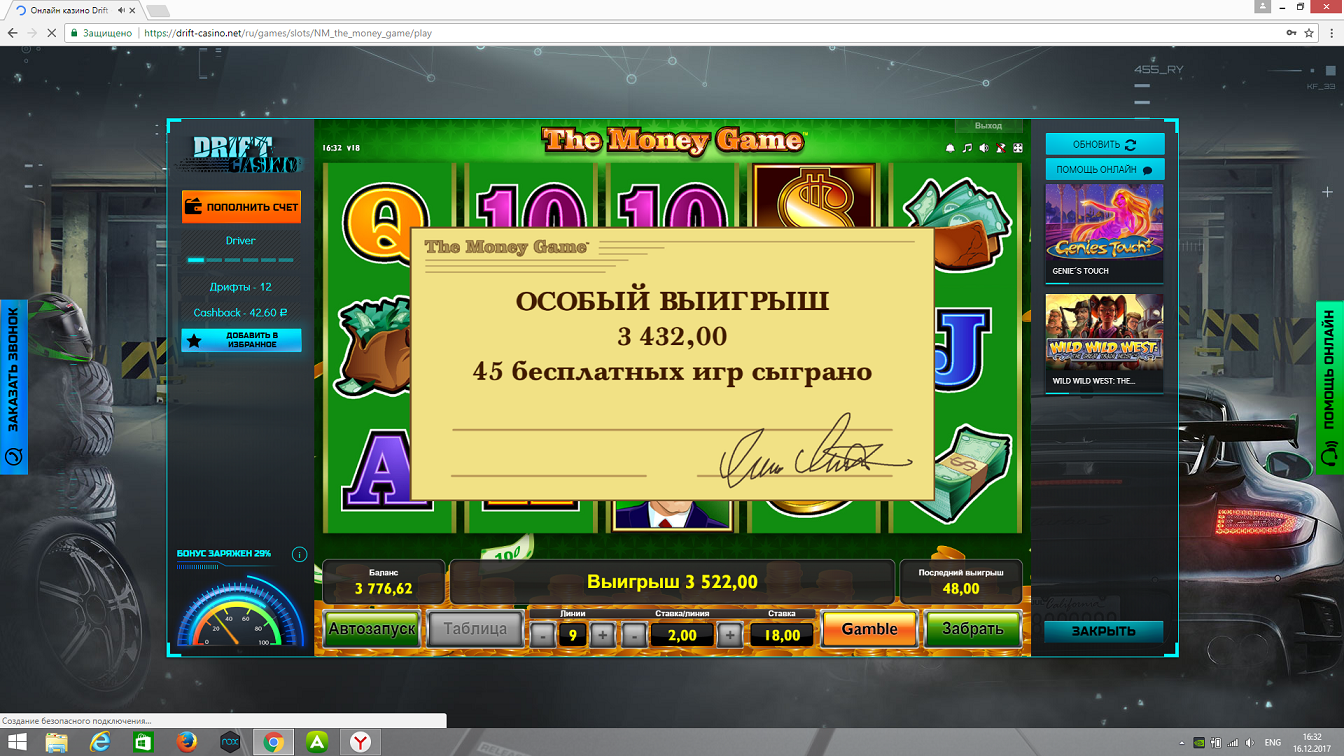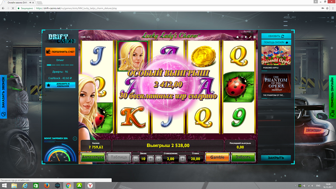 Вчера в Дрифте решил покатать.Взял 100 ФС по счастливому часу и 20 ФС в Рапунцель. С этих 120ФС дало всего 280р)))
