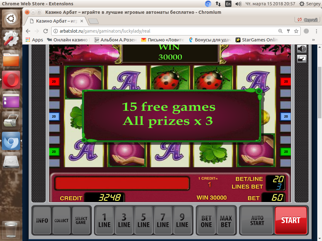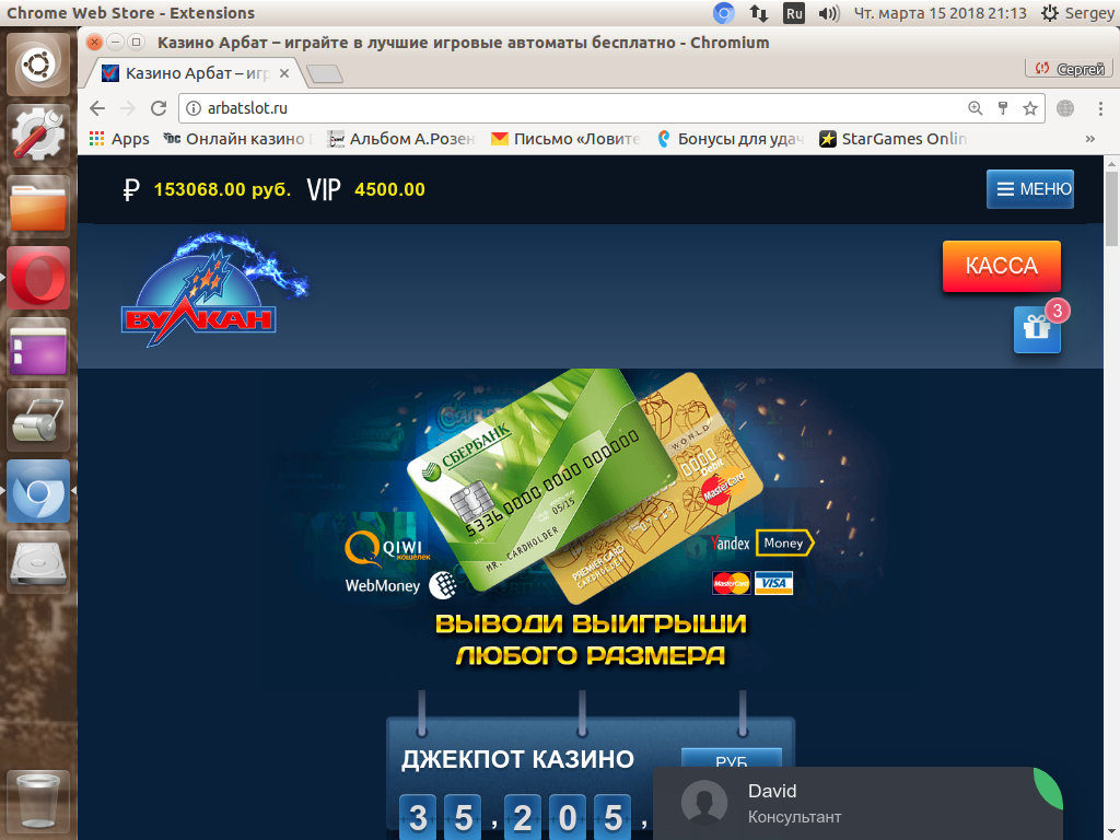 Арбат слот... В ВК менеджер прислала сообщение с предложением зарегистрироваться у них на сайте за что мне дарят 500 руб бездеп!!! Бездеп получил.....Итог 153 тысячи рублей. Там бонус поставила.... Пять сфер 30.000 р. Есть переписка ВК с менеджером.... получил -естественно - 0....хотя игра была....не на фаны а в рубли!!!!Адреналин пёр!!!! 5 сфер!