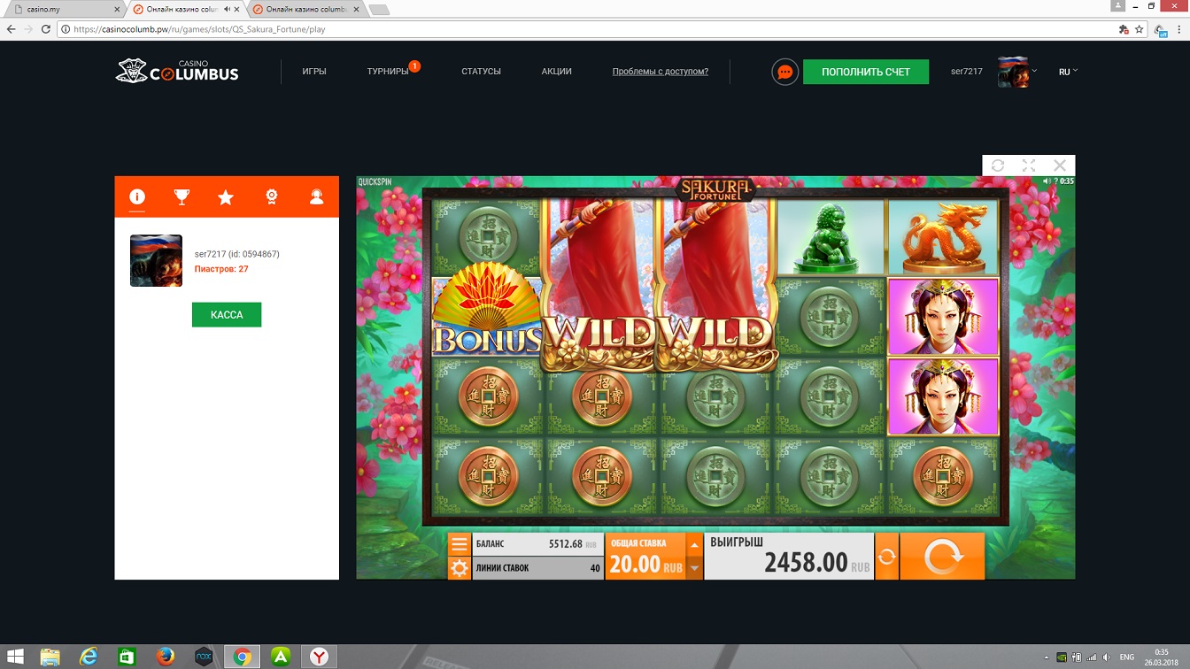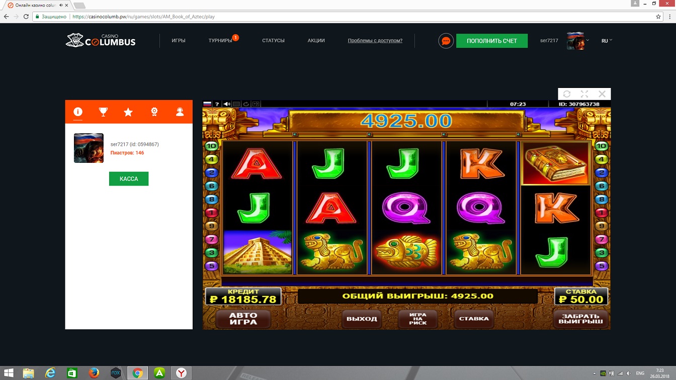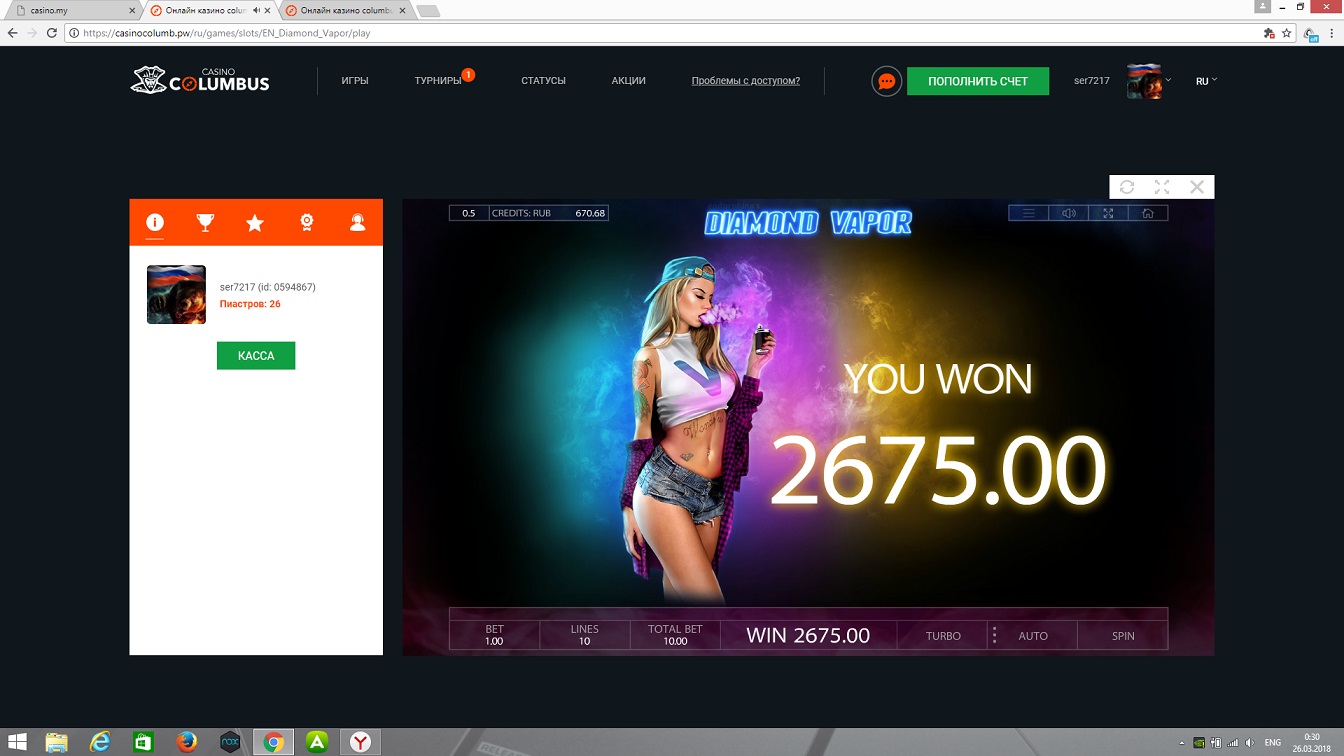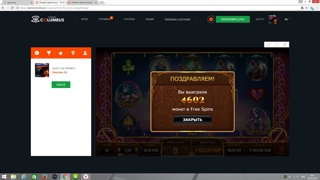 Отмывал купон в казино Columbus, насыпало 200р, остался в этом же слоте. По 5р х600. Поляна топов. Отмыл купон первый раз! )