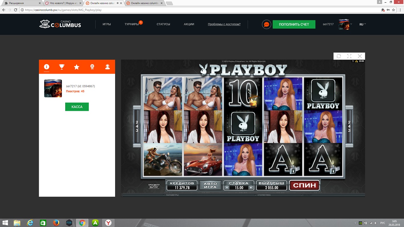 Slot- v казино плейбой новый мне нравится , разнообразие бонусов .,( имеются ещё с десяток скринов но там до 80$ Выигрыши