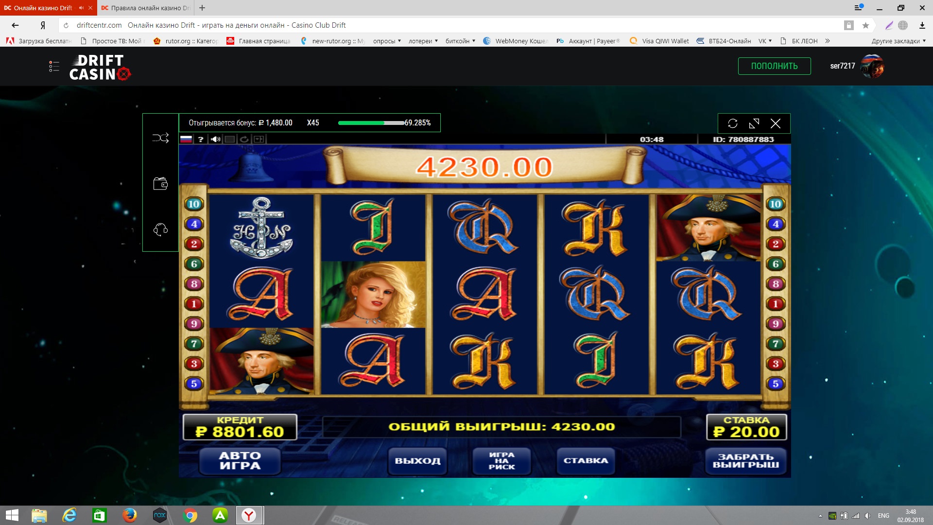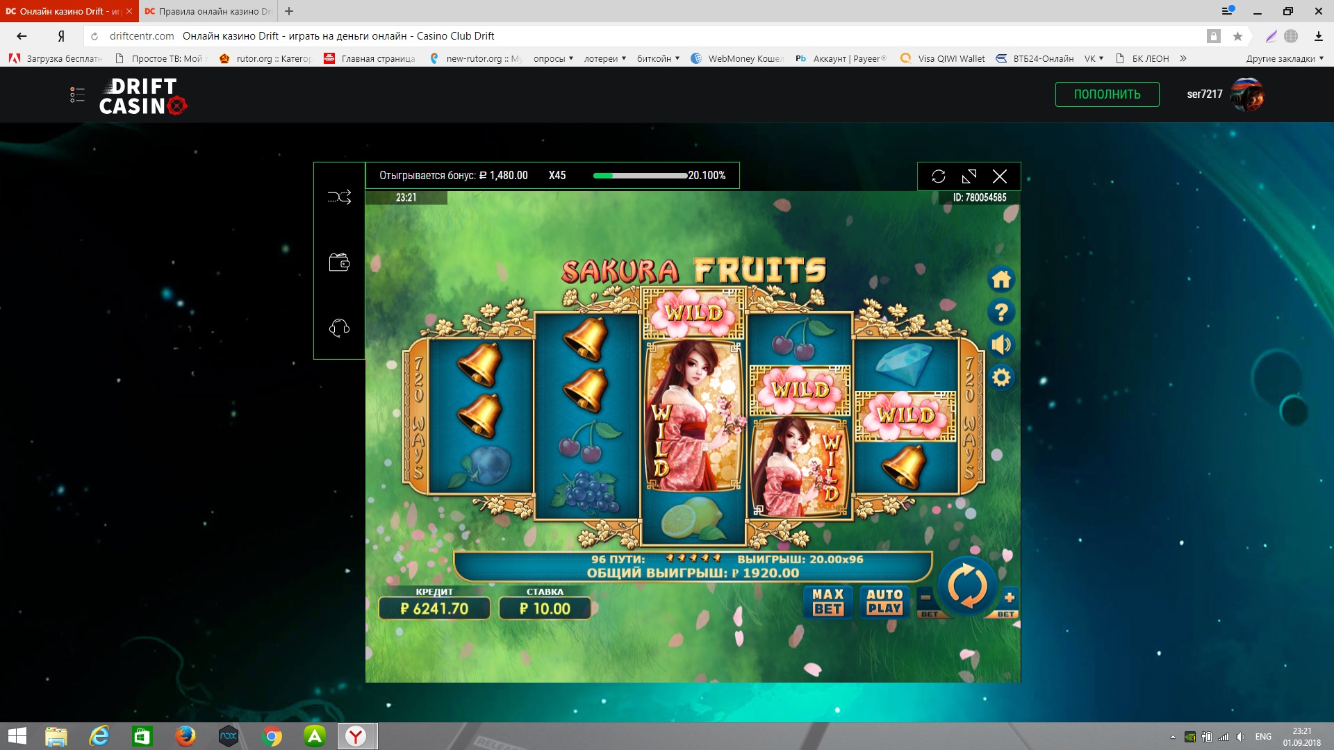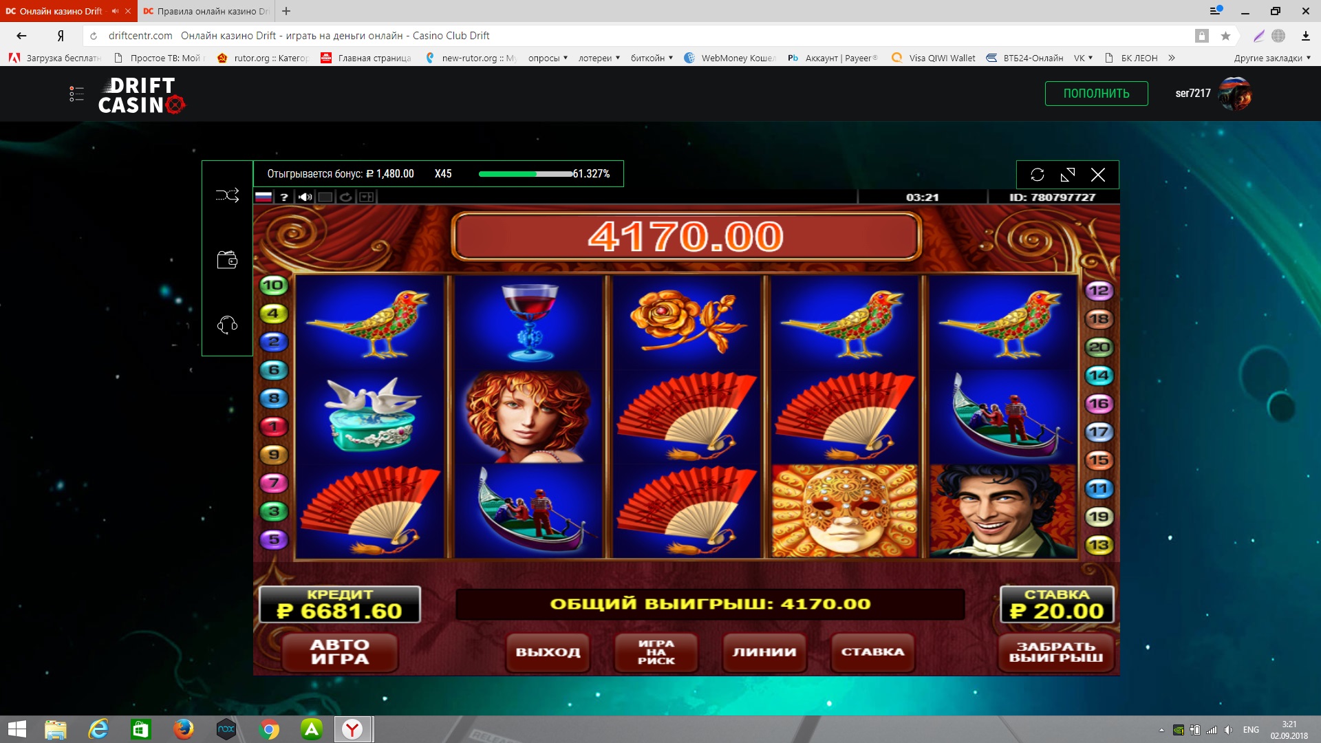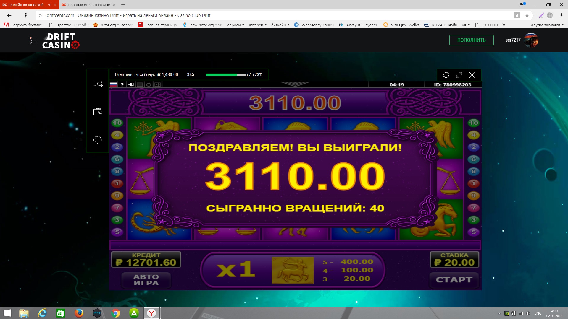 Правда после отыгрыша бонуса бабки пропали со счета) но вопрос быстро решился через чат