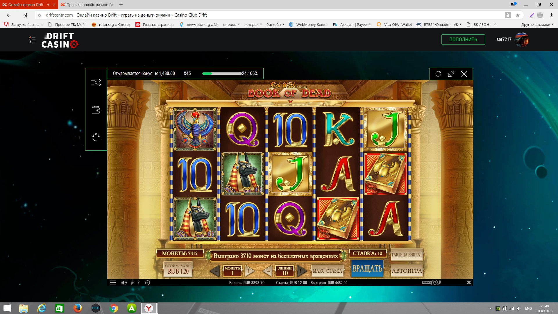 На счету осталось 9р,куда идти? думаю сделаю пару спинов в Бук оф Дед)