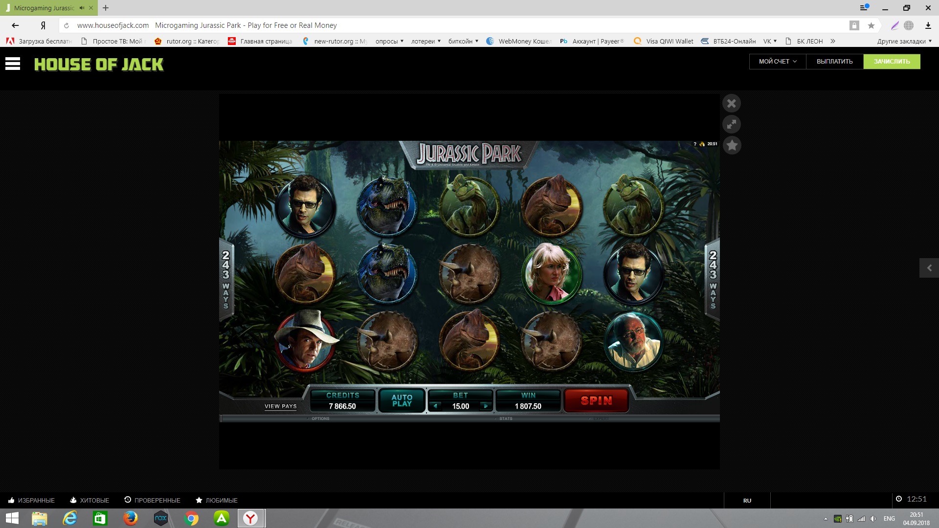 Депнул в House of Jack 400р под 25ФС в Сакуре.