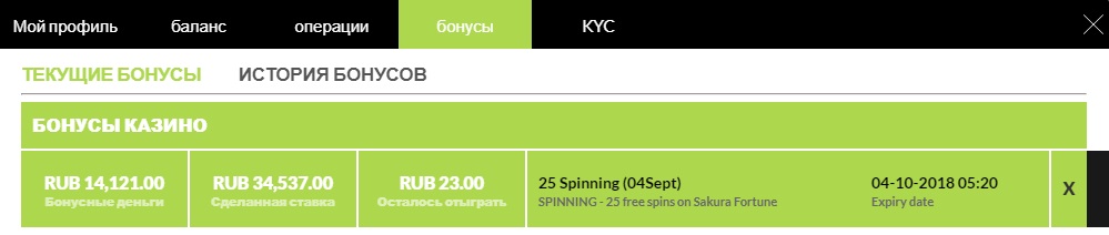 Бонус отыгран