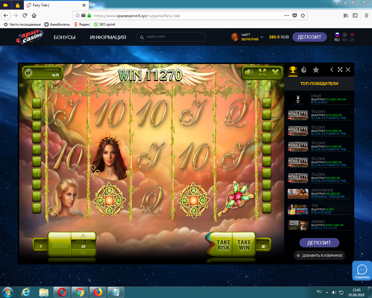 решил поиграть еще в любимую Эндорфину ) х242 по ставке 10р... 2800 на вывод )