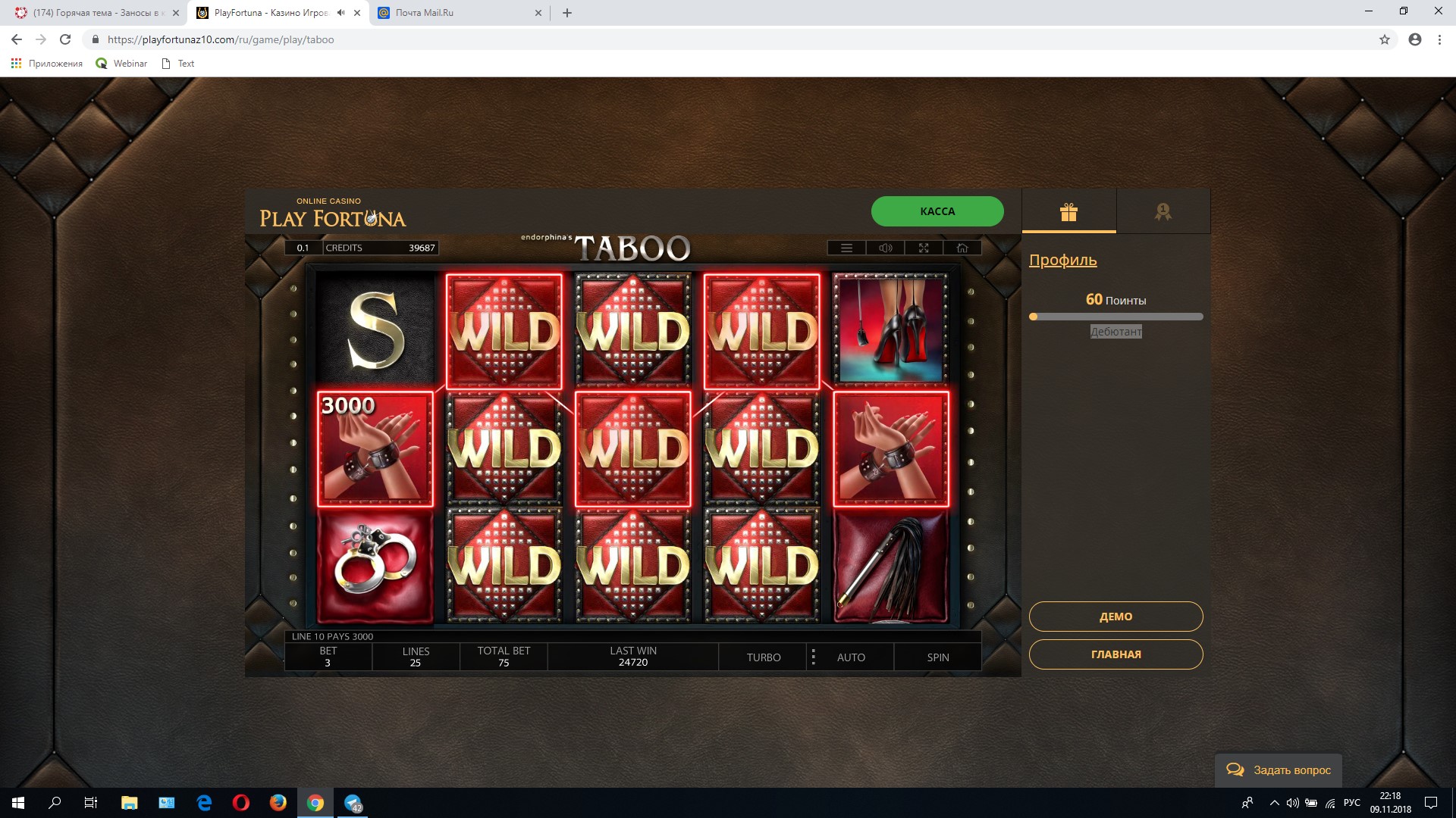 Скрины нужно загружать на форум, через кнопку Прикрепить файлы, а не вставлять с других ресурсов! Впредь буду удалять скрины не загруженные на форум ) Почитайте правила публикации в первом посте темы https://casino.my/threads/zanosy-v-kazino.3820/#post-80749