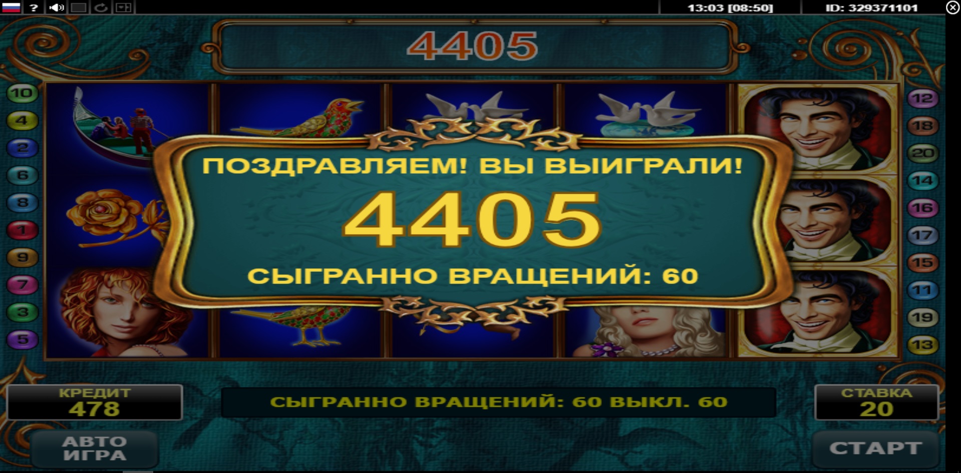Казанова от Аматика отдался на 60 спинов, правда всего на х220