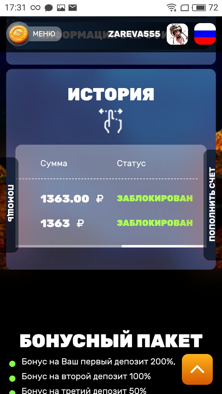 Скажу тебе, не велика потеря. Слоты там мертвые полностью, я вообще удивлен, что кто-то да смог отмыть бонус)Да и хай с ними.![]()